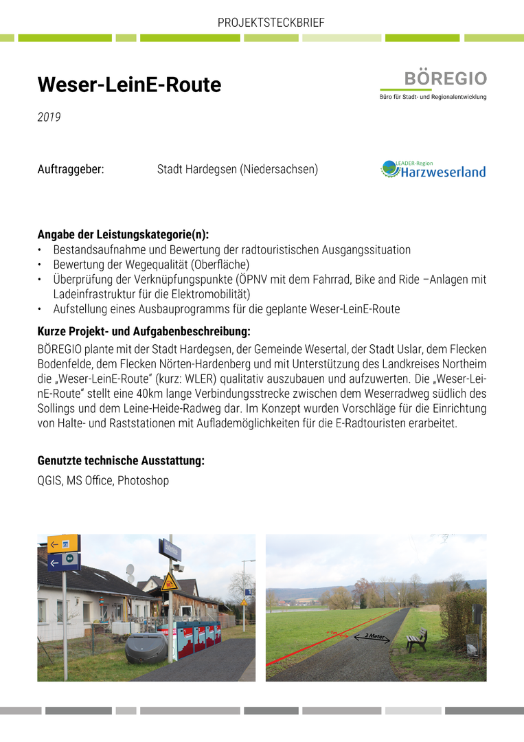 Die radtouristische Infrastruktur (Infotafeln, Schutzhütten, Rastplätze und Abstellanlagen) sollte in der Vogelpark-Region verbessert werden. Dazu wurden Vorschläge der Stadtverwaltung in Bad Fallingbostel von BÖREGIO überprüft und Handlungsempfehlungen abgeleitet.